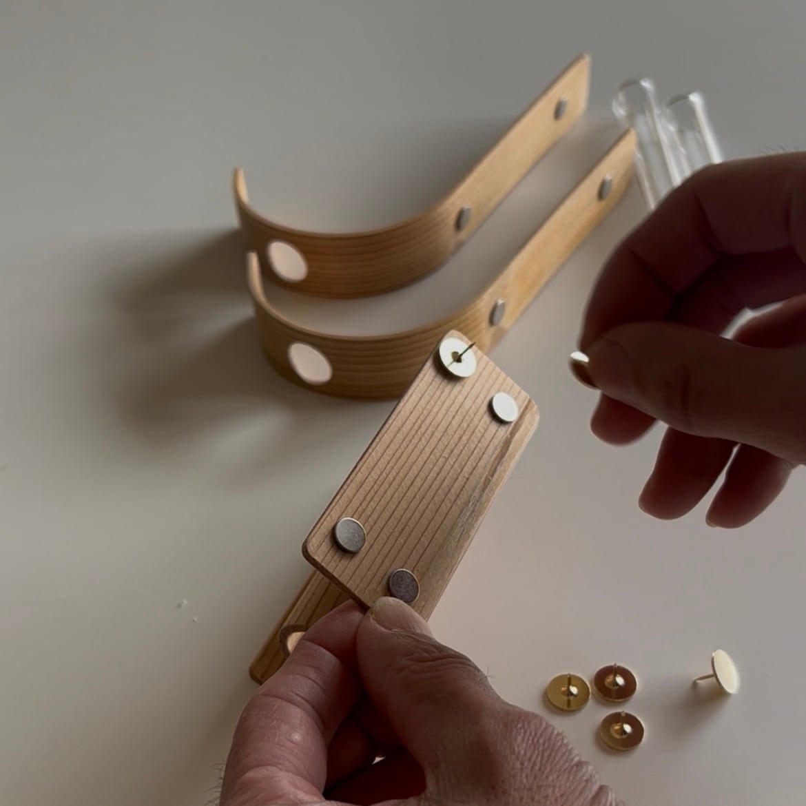 壁面には付属の画鋲に引っ掛けるだけで簡単に固定が可能。